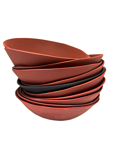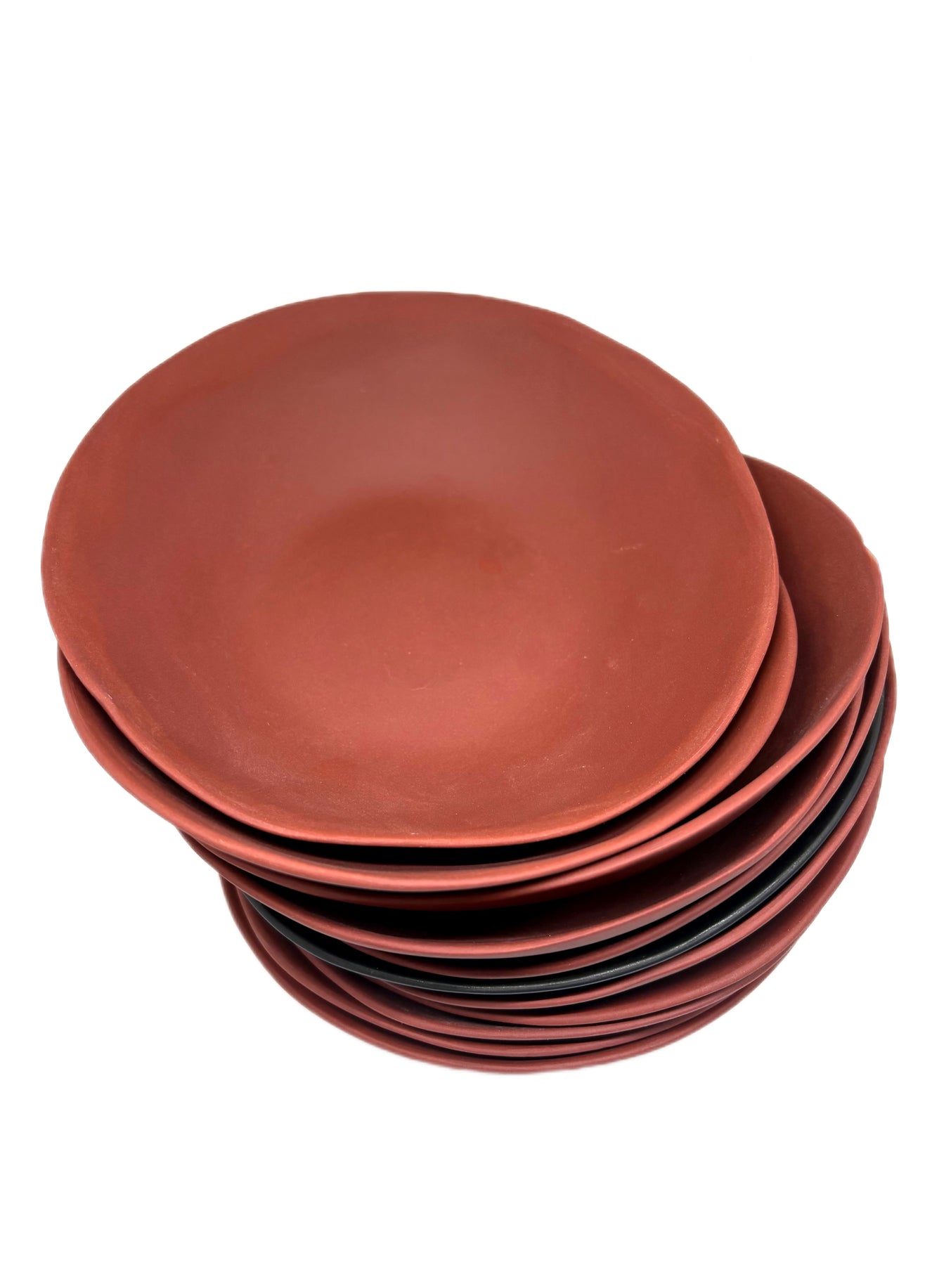 All our ceramics are handmade, displaying differences in shape, size, glazes, and texture. These distinct irregularities honor the artisan's touch. Although our porcelain is suitable for microwave, caution against thermal shock caused by abrupt temperature shifts. Protect against potential harm by resting hot items on wooden or cloth surfaces—store plates in racks or with linen felt between them to avoid scratches.
